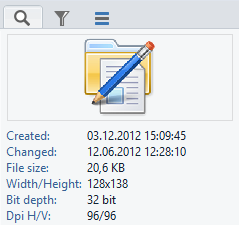 In the detail view, additional information about the selected entry in the preview list is displayed (e.g. mp3 information, image properties, etc.).